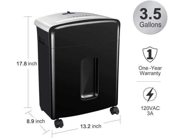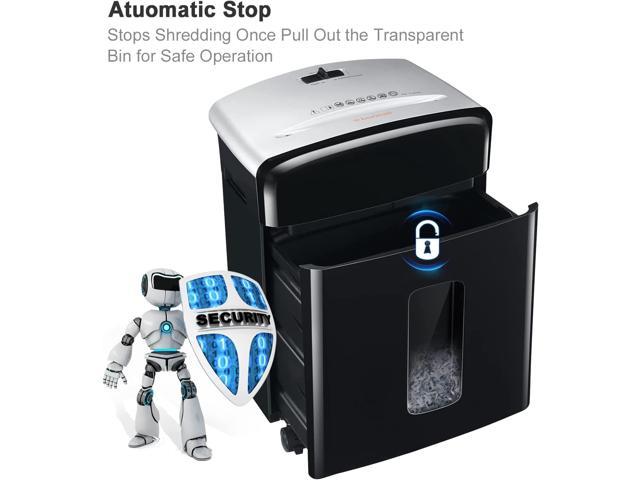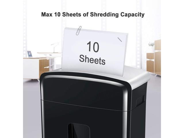 Micro-cut paper shredder with 10 sheets (Letter Size, 75g/m) shredding capacity and 5/32 by 15/32 inches (4x12mm), security level 4; shredding size is perfect to keep your confidential information safe. Destroys paper, staples, credit card(one at a time) Auto start and manual reverse function protect you from the frustration of paper jams; overheating and overloading protection technology keeps sustainable using and prolong shredders lifetime. 5 minutes continuous run time with 45 minutes cool down time; Auto start and manual reverse to clear paper jams 3.5 Gallons pull-out wastebasket capacity for less frequent and easy emptying, Easy to see when it is full with the semi-window