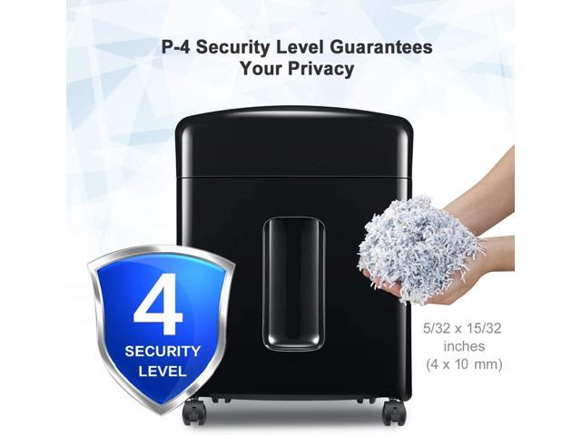 Micro-cut paper shredder with 10 sheets (Letter Size, 75g/m) shredding capacity and 5/32 by 15/32 inches (4x12mm), security level 4; shredding size is perfect to keep your confidential information safe.