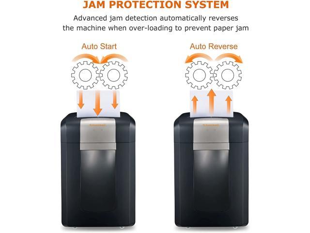 Jam protection system with auto start and auto reverse to protect you from the frustration of paper jams, overheating and overloading protection technology to keep sustainable using the shredder and prolong its lifetime.