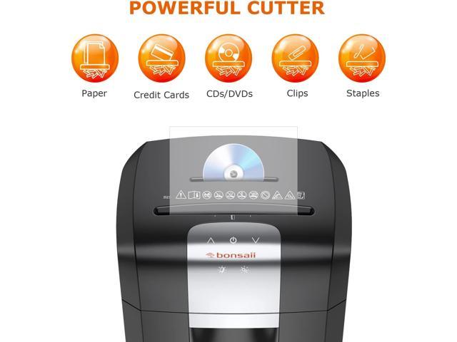 6 gallons large pull-out wastebasket capacity for easy and less frequent emptying, a 0.37 gallons separate small bin for CD/DVD and credit card pieces collection, and the transparent window makes it easy to see when wastebasket is full. Equipped with the casters, heavy duty shredder can be moved flexibly.