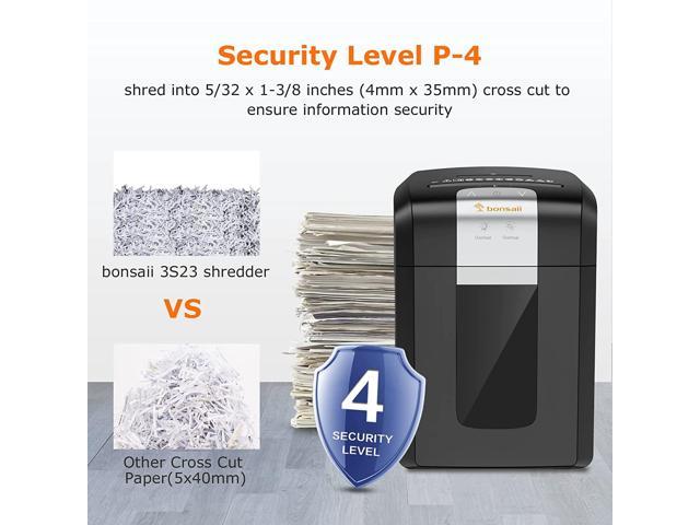 High-security and heavy duty cross-cut paper shredder with 14 sheets (Letter Size, 20lb) shredding capacity; Shreds paper into tiny particles measuring 5/32 by 1-3/8 inches (4mm x 35mm),Security level P-4.