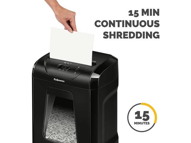 • Shreds continuously for up to 20 minutes before a cool down period is needed allowing you to complete small shredding jobs in one sitting