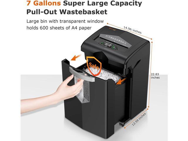 Safe Protection & 1-Year Warranty7 gallons large waste Bin can easily hold 550 sheets of A4 paper for less frequent emptying. Comes with the safety switch, heavy duty shredder will stop working when pull out the bin. Overheating and overloading thermal protection are equipped with LED indicators, bonsaii provides 1-Year warranty to protect your office shredder.