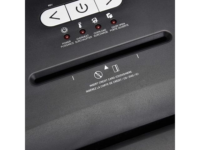 Shreds up to 18 sheets of 20-pound bond paper at a time (no need to remove staples or small paper clips); also destroys CDs, DVDs, and credit cards (one at a time, through dedicated slot)