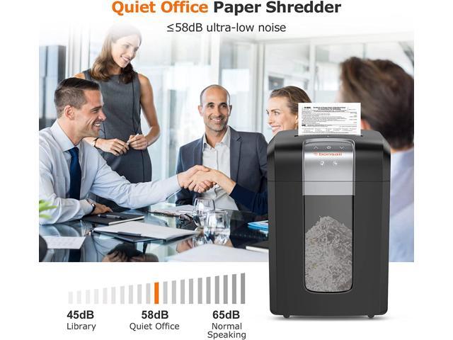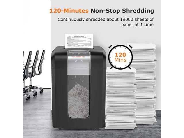 • 120-Minute Shreddingbonsaii paper shredders continuous running time up to 120 minutes without stopping with an advanced cooling system and efficient cutting technology. This shredder can easily achieve 58dB low-noise operation. It will shred large amounts of paper quietly for a long time without disturbing your work.