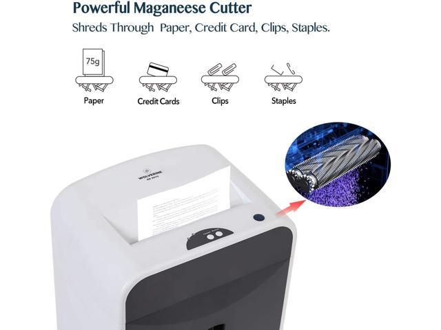 • POWERFUL MANGANESE CUTTER shreds through staples, paper, clips and credit cards and junk mails at ease and lubricant is not needed.