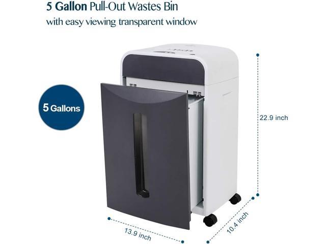 • LOW NOISE LEVEL of 54dB ultra-quiet performance paper shredder for home office has 5 gallons pull-out waste bin with easy viewing transparent window