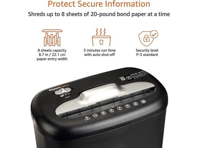 • Product 1: Shreds up to 8 sheets of 20-pound bond paper at a time, including staples and small paper clips; 8.7-inch-wide entry