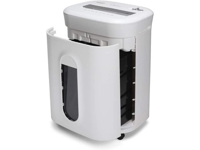 Micro-Cut with 10 sheet capacities; destroys credit cards and small paper clips Shreds paper and credit cards into small pieces (5/64 by 15/32 inches), security level P-5 Ultimate protection with particles 10 times smaller than standard cross-cut. Approximately 2592 particles per letter size paper Nonstop 60-minute continuous run time; Anti-jam Auto-reverse to clear paper jams. Ultra-quiet operation 6-gallon pullout bin with LED indicator lights Standby/ Overheat/ Bin-full/ Overload/ Door open status
