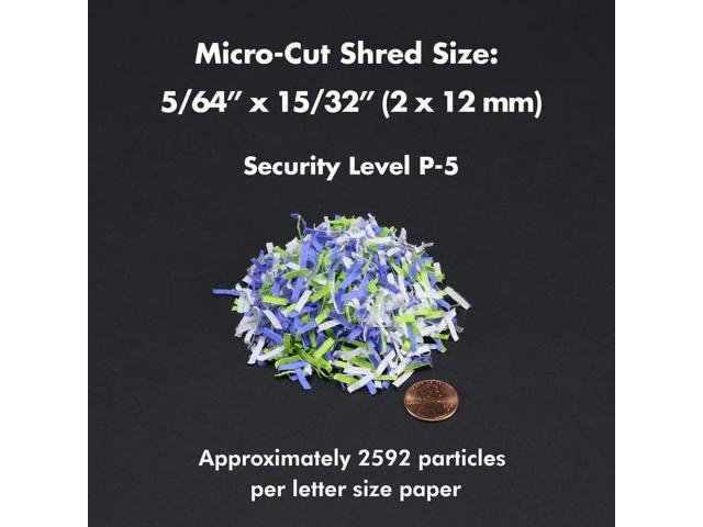 Ultimate protection with particles 10 times smaller than standard cross-cut. Approximately 2592 particles per letter size paper