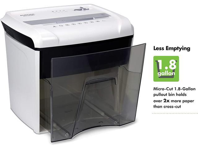 • “ShredEase angled-feed safety feature prevents accidents; 1.8-Gallon translucent pullout bin with LED indicator lights standby/ overheat/ overload/ door open status
