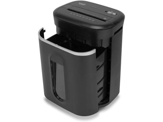 High security crosscut with 14 sheet capacities; destroys CDs, DVDs, credit cards and small paper clips Shreds paper, CDs, DVDs, credit cards into small pieces (5/32 by 1-7/32 inches), security level P-4 Nonstop 120-minute continuous run time Anti-jam auto-reverse to clear paper jams; ultra-quiet operation 6.0-Gallon pullout bin with LED indicator lights standby/ overheat/ bin-full/ overload/ door open status