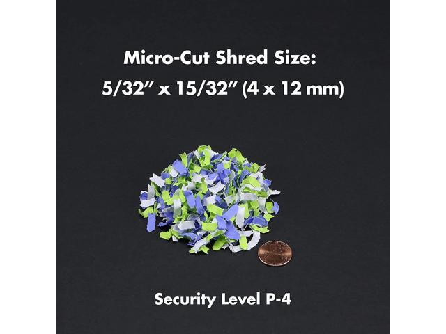 • Shreds paper, CDs, DVDs, credit cards into small pieces (5/32 by 15/32 inches), security level P-4