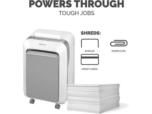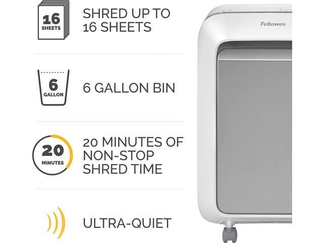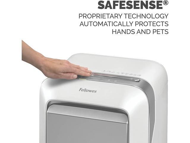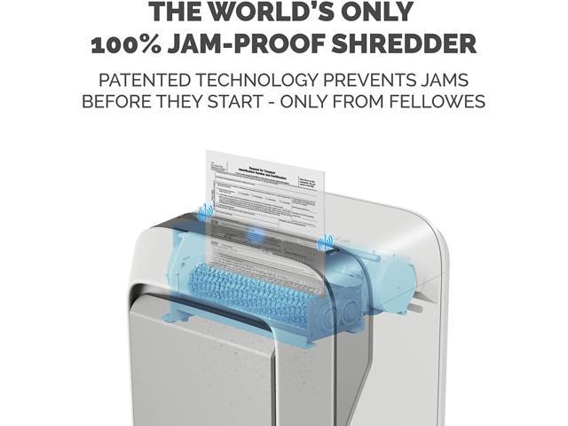 100% Jam Proof System:Unlike other paper shredders, the LX21M automatically detects and powers through tough jobs to prevent jams instead of just reversing them Optimal Shredding:This heavy-duty shredder can shred 16 pages and speed through the toughest jobs including staples, paper clips, credit cards, junk mail and more SafeSenseProtection:Keep hands and pets safe thanks to intuitive, patented technology that stops shredding when hands or paws touch the paper entry – no unplugging or locking necessary Efficiency Meter:Indicates the ideal number of sheets that can be shredded at a time Bin Full Indicator:Know when the bin is nearly full and when it needs to be emptied P-4 Micro-Cut Shredder:Keep your most confidential documents secure, shredding approximately 1,257 particles per sheet 100+ Years of Innovation:Driven by a commitment to quality, Fellowes is dedicated to developing solutions to help you be at your best