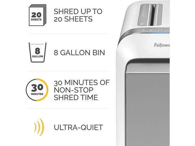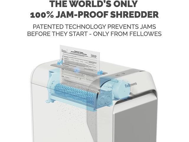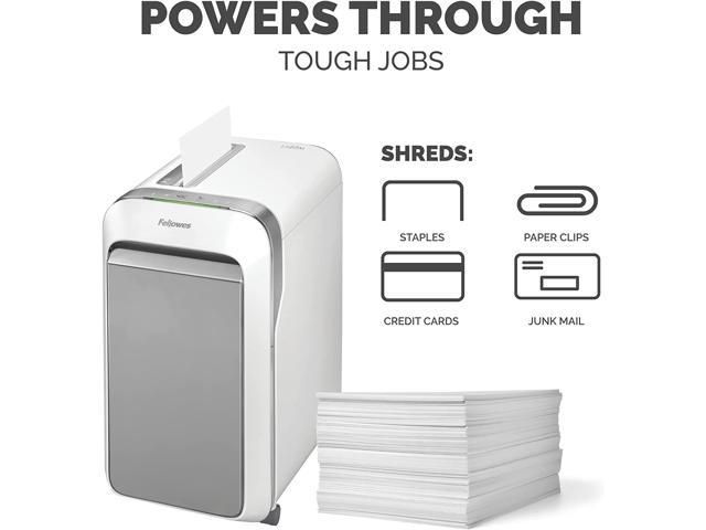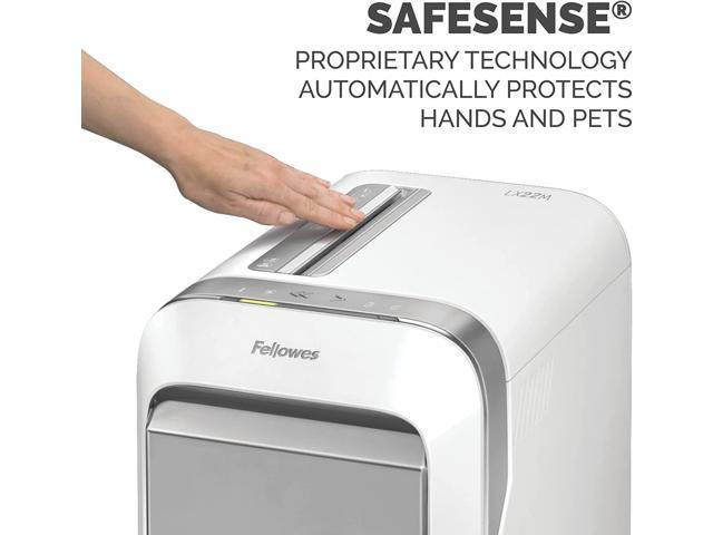 100% Jam Proof System: Unlike other paper shredders, the LX22M automatically detects and powers through tough jobs to prevent jams instead of just reversing them Optimal Shredding: This heavy-duty shredder can shred 20 pages and speed through the toughest jobs including staples, paper clips, credit cards, junk mail and more SafeSense Protection: Keep hands and pets safe thanks to intuitive, patented technology that stops shredding when hands or paws touch the paper entry – no unplugging or locking necessary Efficiency Meter: Indicates the ideal number of sheets that can be shredded at a time Bin Full Indicator: Know when the bin is nearly full and when it needs to be emptied P-4 Micro-Cut Shredder: Keep your most confidential documents secure, shredding approximately 1,257 particles per sheet 100+ Years of Innovation: Driven by a commitment to quality, Fellowes is dedicated to developing solutions to help you be at your best