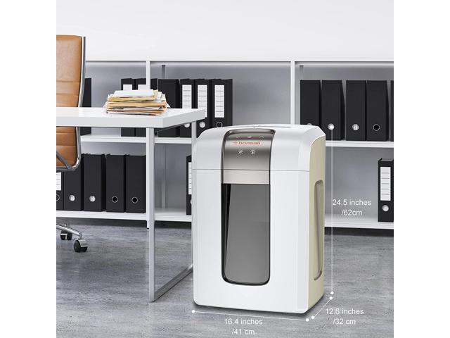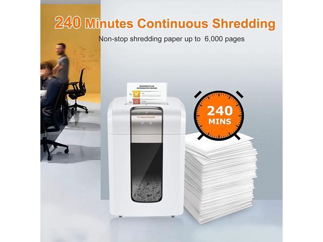• Heavy Duty Commercial ShredderWith patented cooling system, bonsaii 5-sheet office paper shredder can up to 240 minutes continuous running time without stopping for destroying mass private paper, junk mail, contract, credit card, CD/DVD, clip and staples documents at the speed of 6.5 feet per minute