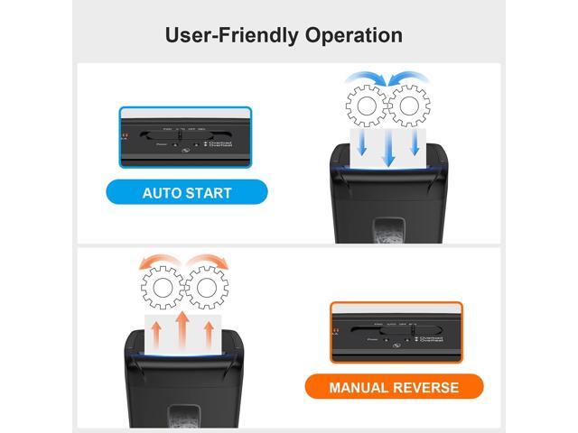 Overheat and Overload ProtectionThe paper shredder heavy duty for home office continuous shredding at full load for 5 minutes before needing a 40-minute cool-down with overheat/overload LED indicator. If the office shredder shreds beyond the max sheet, the red light will flash and papers will be ejected. If it works continuously beyond the max running time 5 minutes and begins to overheat, the unit will automatically shut off to protect the motor.