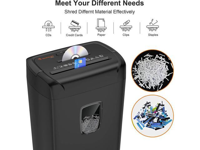 Paper Shredder For Home Use & Small OfficeBonsaii Crosscut paper shredder accepts up to 12 sheets of paper per time and shreds them into small pieces 13/64 * 1-37/64 inches (5x40mm). The heavy duty paper shredder for home office can effectively reduce the problem of paper jam with the high strength alloy cutters. You can also use it to destroy staples, paper clips, credit cards, CDS/DVDs.