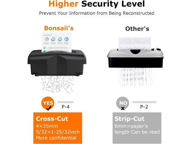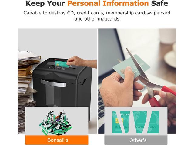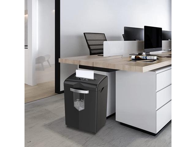 • P-4 High Security LevelPaper shredder for office heavy duty with sturdy and sharp cutters effectively shreds paper, CD, credit card, junk mail, advertising envelopesnewspaper, even with staples and clips into tiny cross-cut particles size 5/32″x1-25/32″, safeguards your personal/commercial identifiable information well. Nice choice for your office.