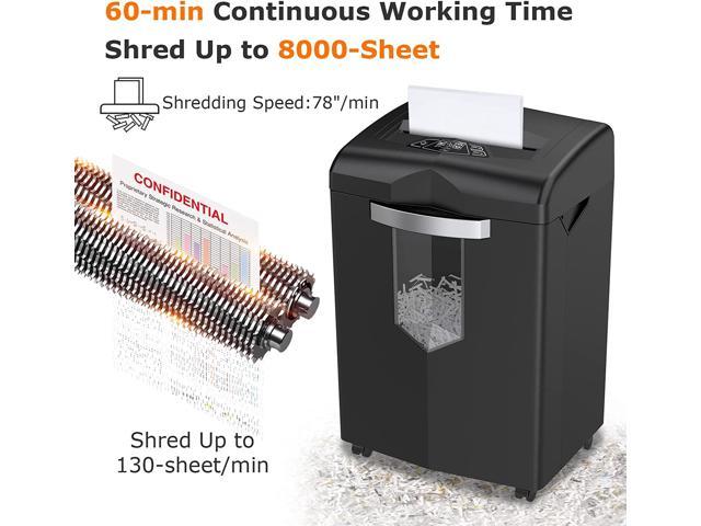 • 24-sheet Shredding CapacityThe paper shredder can shred up to 24 sheets at a time. Continuous running time up to 60 minutes without stopping with an advanced cooling system and patented cutting technology, it can shred about 8,000 sheets of paper. Professional paper shredder for office use.