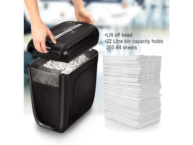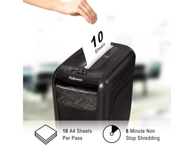 • Shreds 10 sheets of paper per pass into 302 (5/32 x 2 Security Level P-3) cross-cut particles; shreds staples, credit cards, paper clips