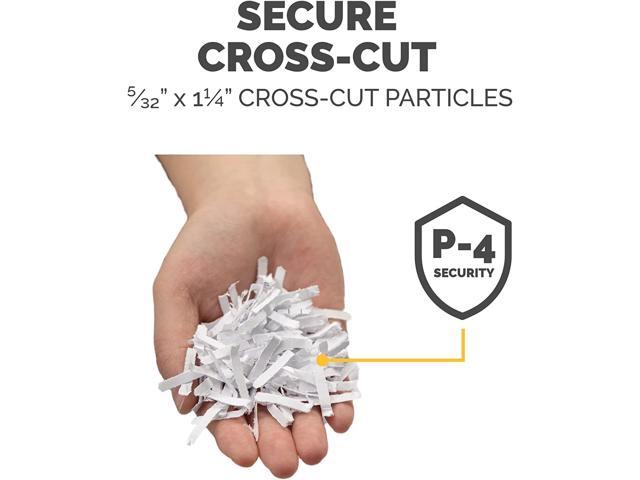 • Secure Cross-Cut: Shreds 11 sheets per pass into 5/32 x 1-9/16 cross-cut particles (security level P-4)