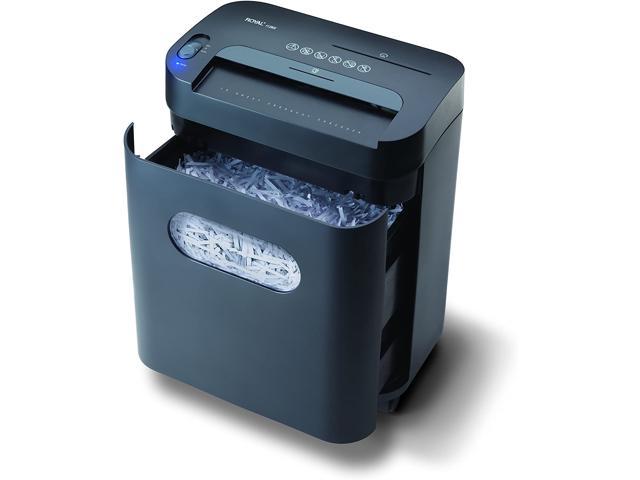 Royal Consumer Information Products, Inc. is a leading supplier of office products, accessories and supplies for the consumer and small business markets. With its- roots in the Royal Typewriter Company, founded in 1904, Royal-s product line has evolved to include cash registers, shredders, PDAs/electronic organizers, postal scales, weather stations, and a wide range of imaging supplies supporting today-s most popular printers, faxes, and copiers. Shreds 6 sheets in a single pass3mm x 9mm shredsShreds credit cards and staplesAuto strat/stop9″ paper entry slotLarge rear wheels for easy mobilityTelescopic handle for transporting from room to roomRear cord wrapRoyalGlo blue light illumination for operational simplicityKey locking bin and power switch lockoutWastebasket included