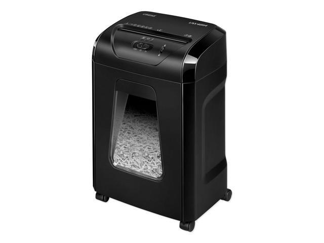 Shreds up to 14 sheets at a time into small cross-cut particles (Security Level P-4).Safety switch disables shredder for added protection.Safely shreds staples, paper clips, plastic credit cards a