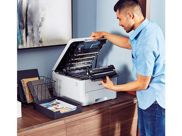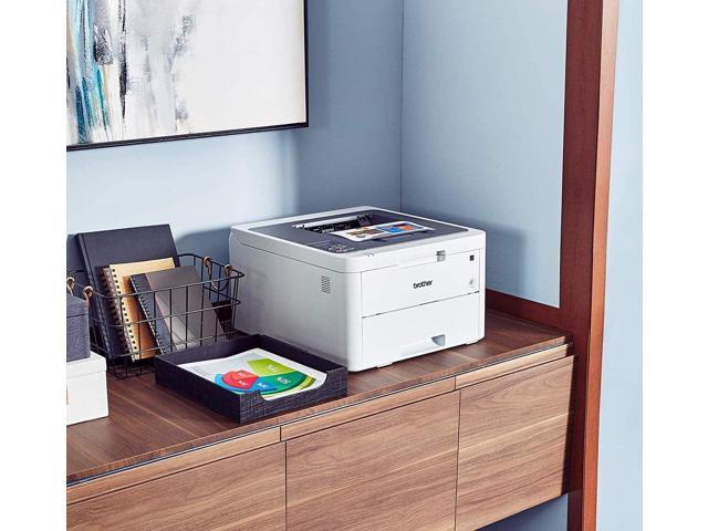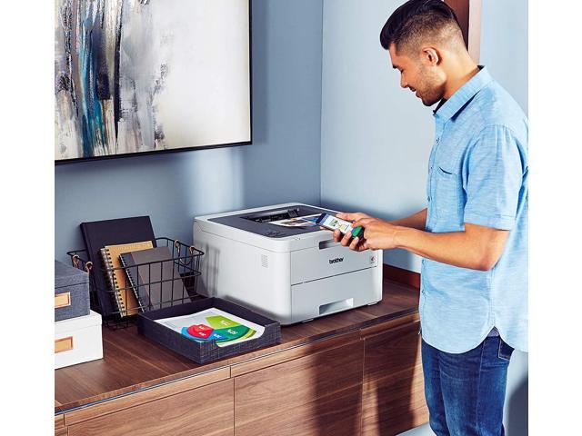 Create vivid prints that stand out using this wireless color compact digital laser printer, with a printing speed of up to 19 pages per minute. The size of Brother’s compact laser printer is very suitable for small office desks or small spaces. Prints up to 19 pages per minute (ppm) in black and color. Flexible paper handling options include trays with up to 250 sheets and manual feed slot.This Brother wireless color compact digital laser printer has a paper capacity of 250 pages, which helps improve efficiency because it takes less time to refill the tray. Prints onto a variety of media, including plain paper, recycled paper, bond, glossy paper, envelopes and labels.Wireless-N connection and Wi-Fi Direct let you print from virtually anywhere. Mobile printing is made simple with Apple AirPrint, Brother iPrint&Scan and other apps.Designed to use less energy than alternative products, potentially helping you save money and reduce your carbon footprint.