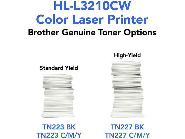 Fast printing to keep you moving: The Brother HLL3210CW Digital Color Printer lets you get things done with up to 19 pages per minute print speedEnjoy easy and affordable color printing: Affordably print professional quality, rich, vivid color documents with laser printer qualityVersatile paper handling helps increase productivity: Help minimize refills with the 250 sheet paper tray, adjusting for letter or legal paper. The manual feed slot handles a variety of paper types and sizes, including card stock, envelopes, etcPrint and connect your way: The HLL3210CW offers wireless mobile device printing(1) and built in wireless, Wi Fi Direct and USB interfacesFor use with brother genuine toner: TN223BK, TN223C, TN223M, TN223Y, TN227BK, TN227C, TN227M, TN227Y