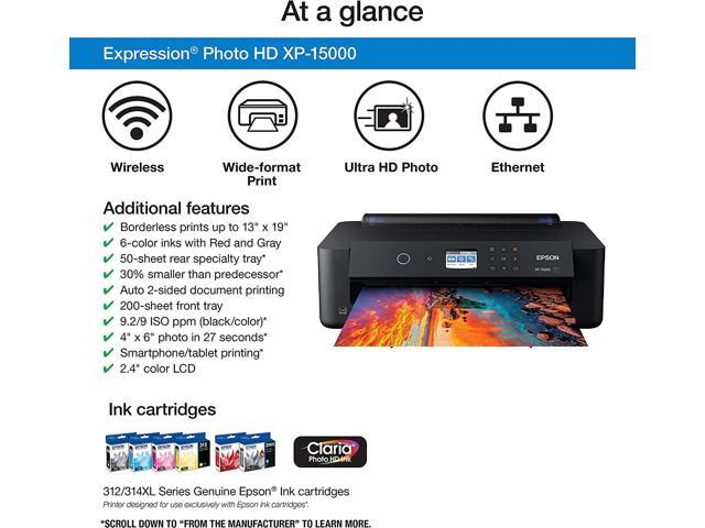 Brand: EpsonModel Number: XP-15000Special Feature: Auto-DuplexPrinting Technology: InkjetColor: BlackConnectivity Technology: Wireless;EthernetItem Dimensions LxWxH: 30.9 x 18.7 x 16.2 inchesSheet Size: 13 inch x 19