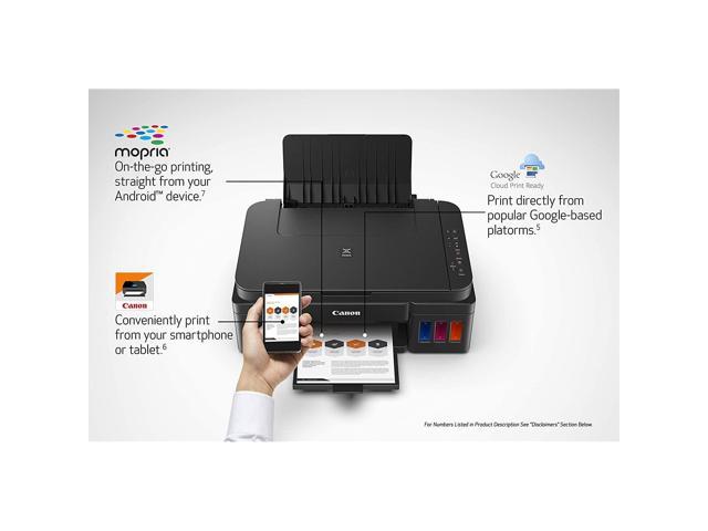 Meet the Canon PIXMA G4210 Wireless Mega Tank All-In-Printer, built for getting serious printing done. The PIXMA G4210 makes printing cost-effective and hassle-free, thanks to its innovative Mega Tank Ink system which can deliver up to 6, 000 sharp, black text pages / 7, 000 vivid color pages, plus you get two full-size BONUS black ink bottles1. The G4210 is designed for documents and great looking photos too – the G4210 can print borderless photos2 from 8. 5″x11″ and 5″x5″ to 4″x6″. Not only will this printer stack up the prints, it’s also seriously connected – with built-in Wi-Fi3, AirPrint4, Google Cloud Print5, USB and even the Cloud6. With the PIXMA G4210, you can stack up the prints – not empty