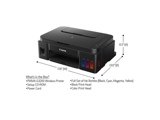 Canon G3200 All-In-One Wireless Supertank (MegaTank) Printer| Copier| Scanner| and Mobile Printing, Black, 6.5″ x 17.6″ x 13″ (0630C002)