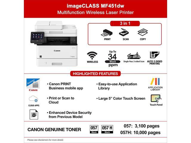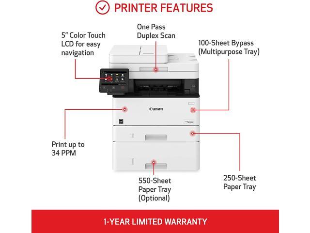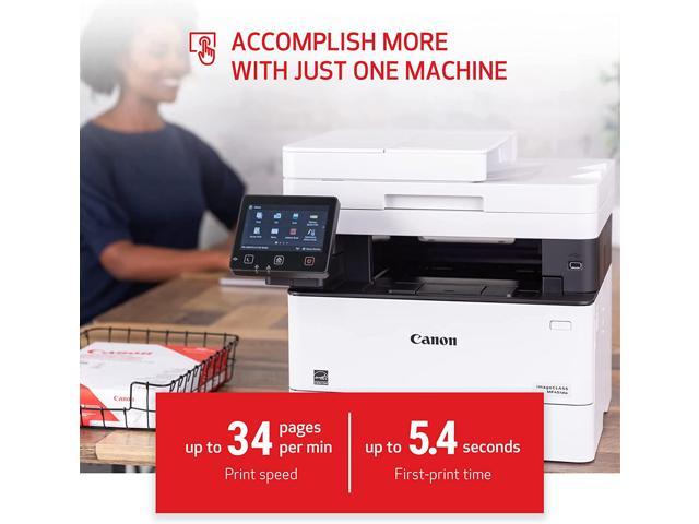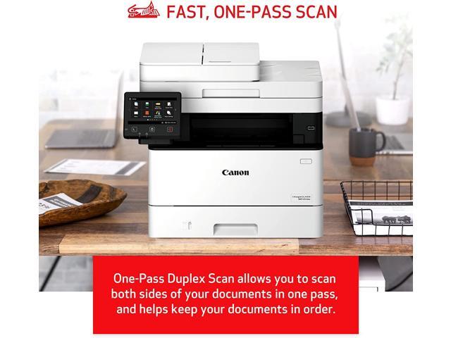 One Pass Duplex Scan allows you to obtain a 2-sided scan with one pass through the automatic document feederPrint up to 34 pages-per-minute with a first print out of time of less than 6 seconds (letter)WiFi Direct Connection enables easy connection to mobile devices without a routerPrint on-the-go with Canon PRINT Business, Apple AirPrint and Mopria Print ServiceHigh capacity toner option keeps up with your printing needs and limits toner replacement interruptions