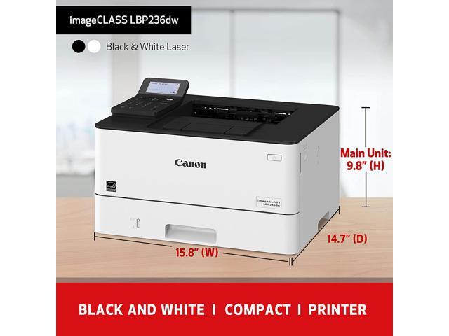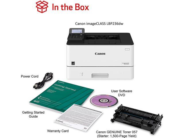 Model Name: ImageCLASSSpecial Feature: Auto-Duplex, Network-ReadyBrand: CanonColor: WhitePrint media: Envelopes, Paper (plain), LabelsStyle: Black and White Laser PrinterIncluded Components: Starter Guide, Power Cord, Cartridge 057 Black Starter, up to 1,500 Page Yield, LBP236dw Printer, User Software DVDROMStarter Guide, Power Cord, Cartridge 057 Black Starter, up to 1,500 Page Yield, LBP236dw Printer, User Software DVDROMConnectivity Technology: EthernetSheet Size: 8.5 x 14Printing Technology: Laser