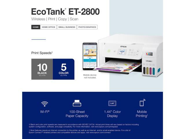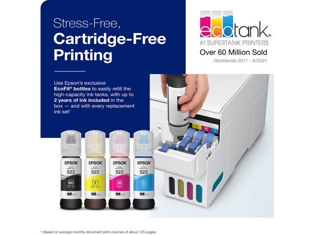 Features Innovative Cartridge-Free Printing – High-capacity ink tanks mean no more tiny, expensive ink cartridges; Epson’s exclusive EcoFit ink bottles make filling easy and worry-free.
