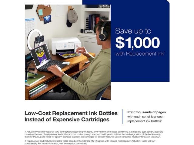 Dramatic Savings on Replacement Ink – Save up to 90% with replacement ink bottles vs. ink cartridges1 – that’s enough to print up to 4,500 pages black/7,500 color, equivalent to about 90 individual ink cartridges.