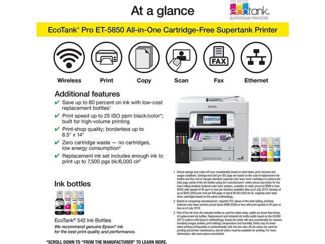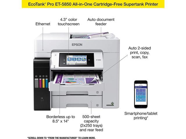 Epson EcoTank Pro ET-5850 Wireless Color All-in-One Supertank Printer with Scanner, Copier, Fax and Ethernet