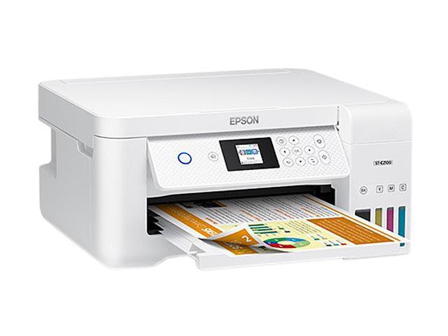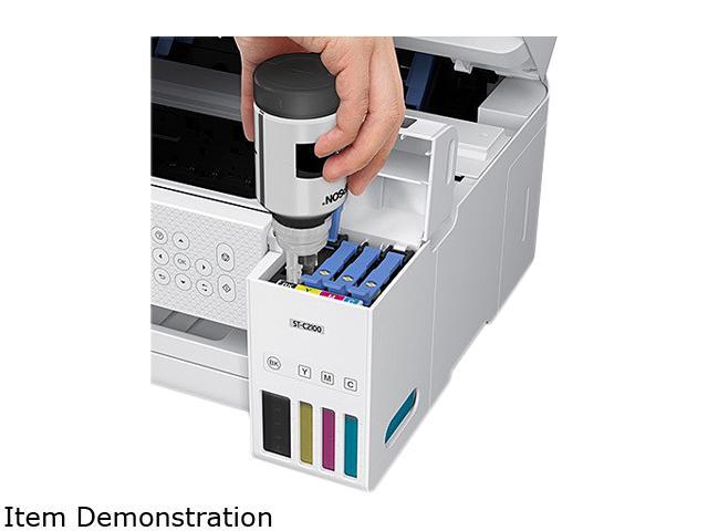 The WorkForce ST-C2100 Supertank Color MFP makes it easy for small offices to make a big impact. Offering remarkable productivity, it features cutting-edge Supertank printing technology with easy-to-fill, supersized ink tanks with a small compact footprint. You wont have to worry about running out of ink at a critical moment since it includes up to 2 years of ink in the box- enough to print up to 6,500 pages black/5,200 color. Your CFO will appreciate the fact you save up to 90 percent with low-cost replacement ink bottles vs. ink cartridges, equivalent to about 90 individual ink cartridges. The ST-C2100 also offers convenient wireless printing from tablets and smartphones, along with Wi-Fi Direct® and auto 2-sided printing. Plus, the WorkForce ST-C2100 is compatible with the Epson Smart Panel® app, a powerful tool that makes it easy to setup, monitor, print, scan, order supplies and more right from your hand-held device.