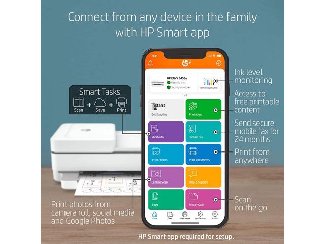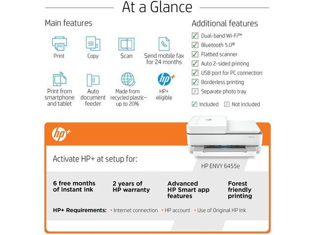 Features HP ENVY 6455e All-in-One Printer w/ bonus 6 months Instant Ink through HP+