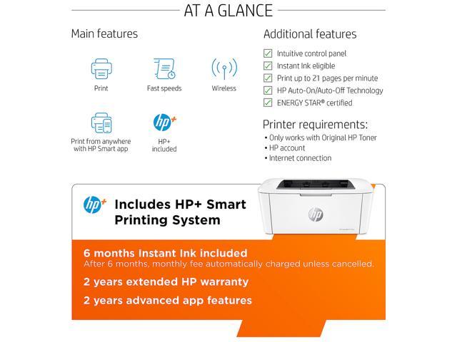 The world’s smallest laser printer in its class, the HP LaserJet M110we is perfect for printing black & white forms and documents. Includes the HP+ Smart Printing System that keeps itself up to date, secure, and ready to print from virtually anywhere at any time.