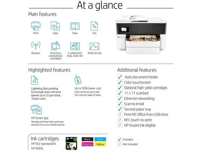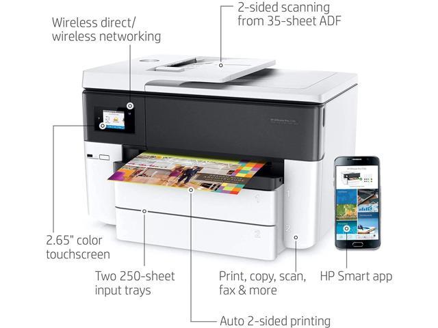 Copy, scan, fax, wide-format printing up to 11×17 inches, wireless printing, AirPrint, Automatic 2-sided printing, color touchscreen, automatic document feeder, and more. Quickly browse multiple pages of documents and automatically print on both sides.This wireless all-in-one printer has a fast Prints up to 34 ppm in black and color. support high-volume office printing with a paper input capacity of up to 500 sheets with two 250-sheet paper trays.The HP Smart app allows you to easily set up your printer, scan from your smartphone, order toner, and print from the cloudsuch as iCloud, Dropbox and Google Drive. HP has a first-class mobile printing application, and proprietary office functions .Wi-Fi Direct lets you connect network free using Apple AirPrint, Google Cloud Print and the HP Smart app. Ethernet and USB ports provide wired connections.Designed to use less energy than alternative products, potentially helping you save money and reduce your carbon footprint.