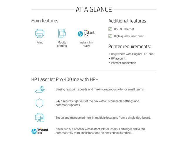 | Package Contents | HP Black Original LaserJet Toner Cartridge (~2,900 Pages) Getting Started Guide Support Flyer Warranty Guide Regulatory Flyer Power cord |