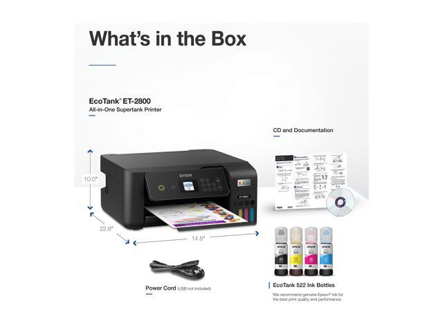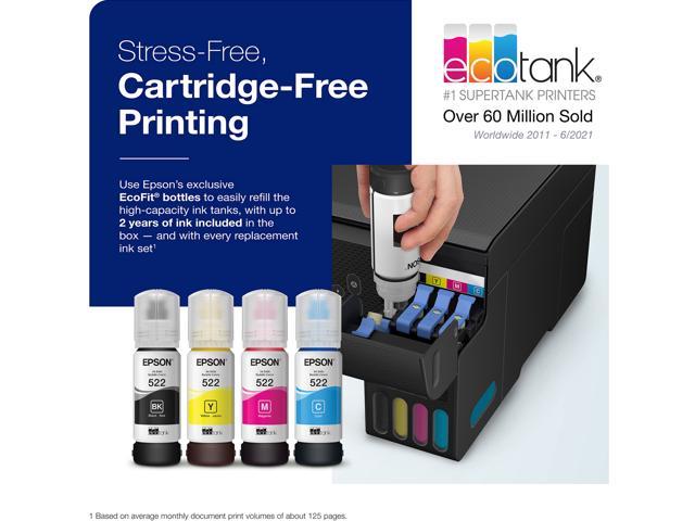 Innovative Cartridge-Free Printing – High-capacity ink tanks mean no more tiny, expensive ink cartridges; Epson’s exclusive EcoFit ink bottles make filling easy and worry-free