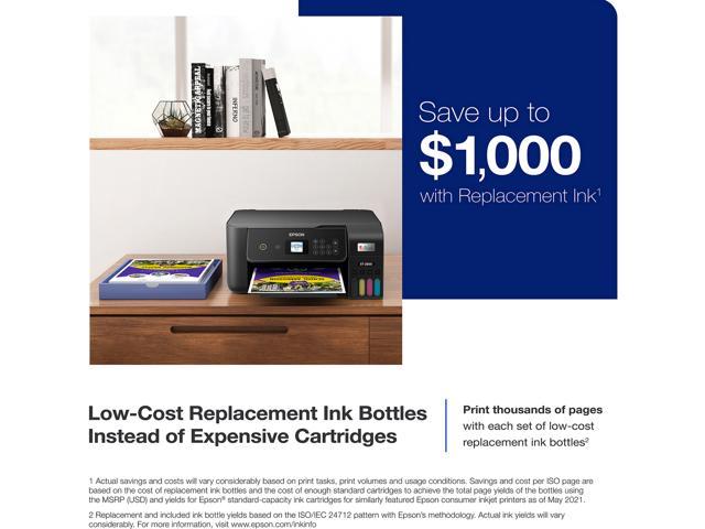 Dramatic Savings on Replacement Ink – Save up to 90% with replacement ink bottles vs. ink cartridges1 – that’s enough to print up to 4,500 pages black/7,500 color2, equivalent to about 90 individual ink cartridges3