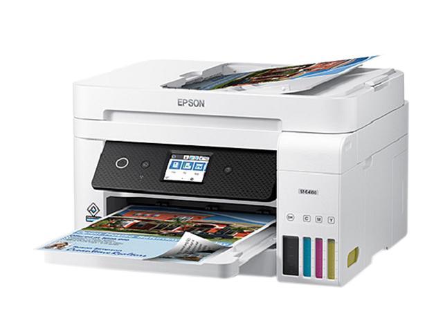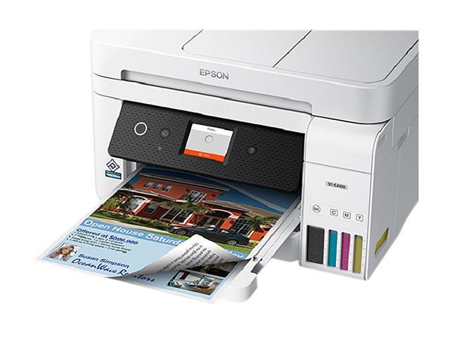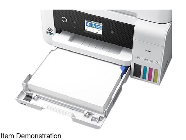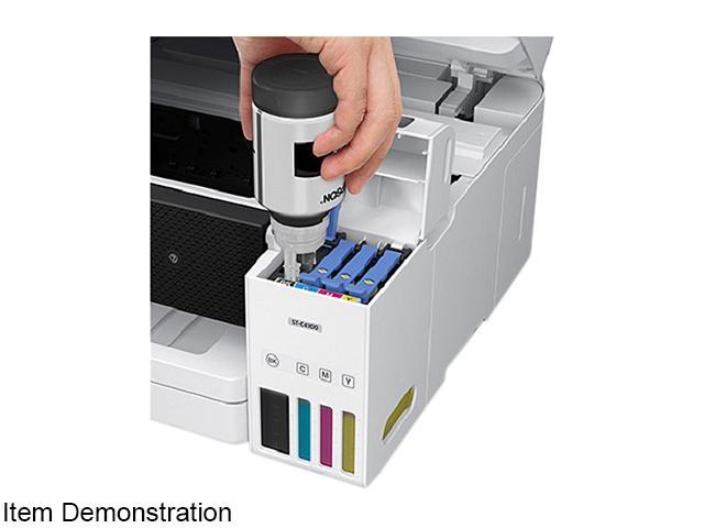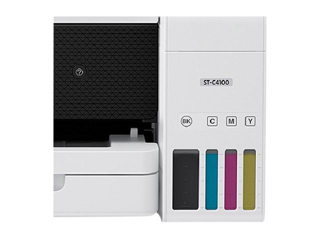 The WorkForce ST-C4100 Supertank Color MFP, powered by PrecisionCore Heat-Free Technology™, makes your business look its best when it means the most. Offering remarkable productivity for small work teams, it features revolutionary printing with easy-to-fill, supersized ink tanks. And, it includes up to 2 years of ink in the box – enough to print up to 14,000 pages black/11,200 color. Your CFO will appreciate the fact you save up to 90 percent with low-cost replacement ink bottles vs. ink cartridges, equivalent to about 90 individual ink cartridges. The WorkForce ST-C4100 also offers a high-capacity 250-sheet paper tray, fax, 2.4″ color touchscreen, 30-sheet ADF, fast auto 2-sided printing and convenient wired and wireless networking. Plus, the WorkForce ST-C4100 is compatible with the Epson Smart Panel® app, a powerful tool that makes it easy to setup, monitor, print, scan, order supplies and more right from your hand-held device. And, its 90-degree power cord means the ST-C4100 can easily fit in tight spaces.