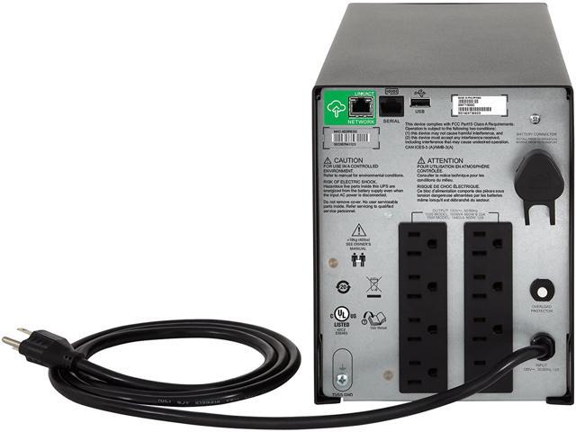 1000VA / 600W Pure Sine Wave UPS battery backupAPC SmartConnect is the first cloud-enabled UPS for Distributed IT. Through a secure portal (via any internet-connected device), you can view the status of your UPS, receive notifications, get firmware updates and moreAutomatic Voltage Regulation (AVR) adjusts high and low voltages to a safe level, helping preserve the life of the batteryInput: NEMA 5-15P. Output: (8) NEMA 5-15RFREE Additional 1 Year of Battery Warranty when you connect and register this APC UPS with the SmartConnect AppIntelligent battery management means the Smart-UPS SMC1000C prolongs the battery life of the UPS by regulating the charge voltage in relation to battery temperature, and also provides a predictive month/year for battery replacement