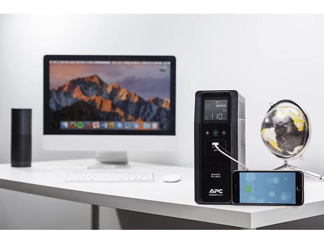 1350VA / 810W Backup Battery power supplySinewave UPS designed for high-end electronics (see video on the left). Ideal battery backup for computerAutomatic Voltage Regulation (AVR) instantly corrects high/low voltage fluctuations, and is Active PFC compatible10 Outlets (NEMA 15-15R): 6 Battery backup outlets; 4 Surge-protection only outlets. PLUS: (1) USB-C Charging port, and (1) Type-A USB charging port (15W combined)6′ Power Cord with space saving right-angle wall plug (NEMA 15-15P). Plus FREE power-management software for Windows PC (Mac OS uses native ‘Energy Saver’ in settings)Backed by an APC 3 YEAR WARRANTY, plus a $250,000 connected-equipment policy