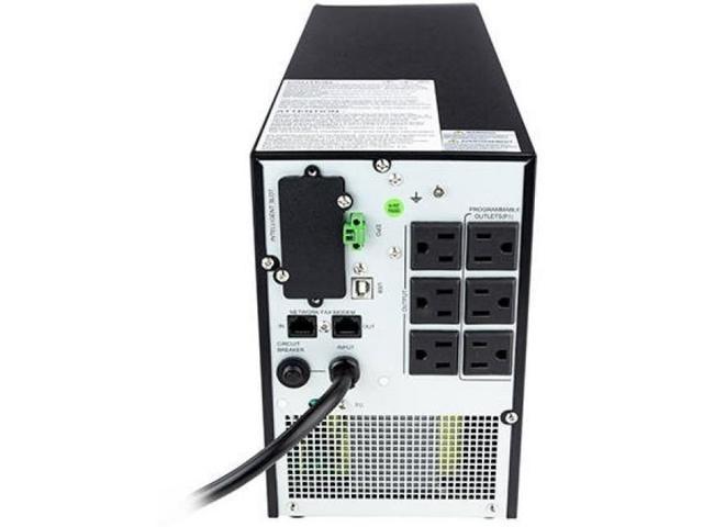 | Features | Advanced, pure sine wave output power on battery 0.9 power factor, which means more usable power for connected devices Voltage regulation from 83 to 159 VAC without using the battery Less than 6 milliseconds transfer time to battery Plug-and-play solution requires no installation and no rack space RJ-45 for data line surge protection |