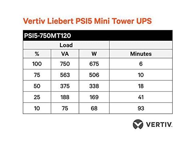 The Vertiv Liebert PSI5 UPS, 800VA 720W, is designed to support and safeguard media closets, small racks, active power factor correction (PFC) power supplies, conventional power supplies and other critical electronics. It provides reliable protection from power disturbances for smart automation systems, computers, high-end gaming PCs/consoles, entertainment centers, cash registers and other equipment that is part of schools, healthcare facilities and other edge businesses. With up to 11 minutes of battery backup time at half load and 3 minutes at full load, this reliable system allows ample time for an orderly shutdown during a power outage. A rotating LCD display makes the readout easy to see in both rack and tower configurations providing real time information regarding the UPS status and operating conditions. Vertiv backs the Liebert PSI5 UPS with a 2-year, no hassle, advanced replacement warranty to ensure simple UPS replacement.